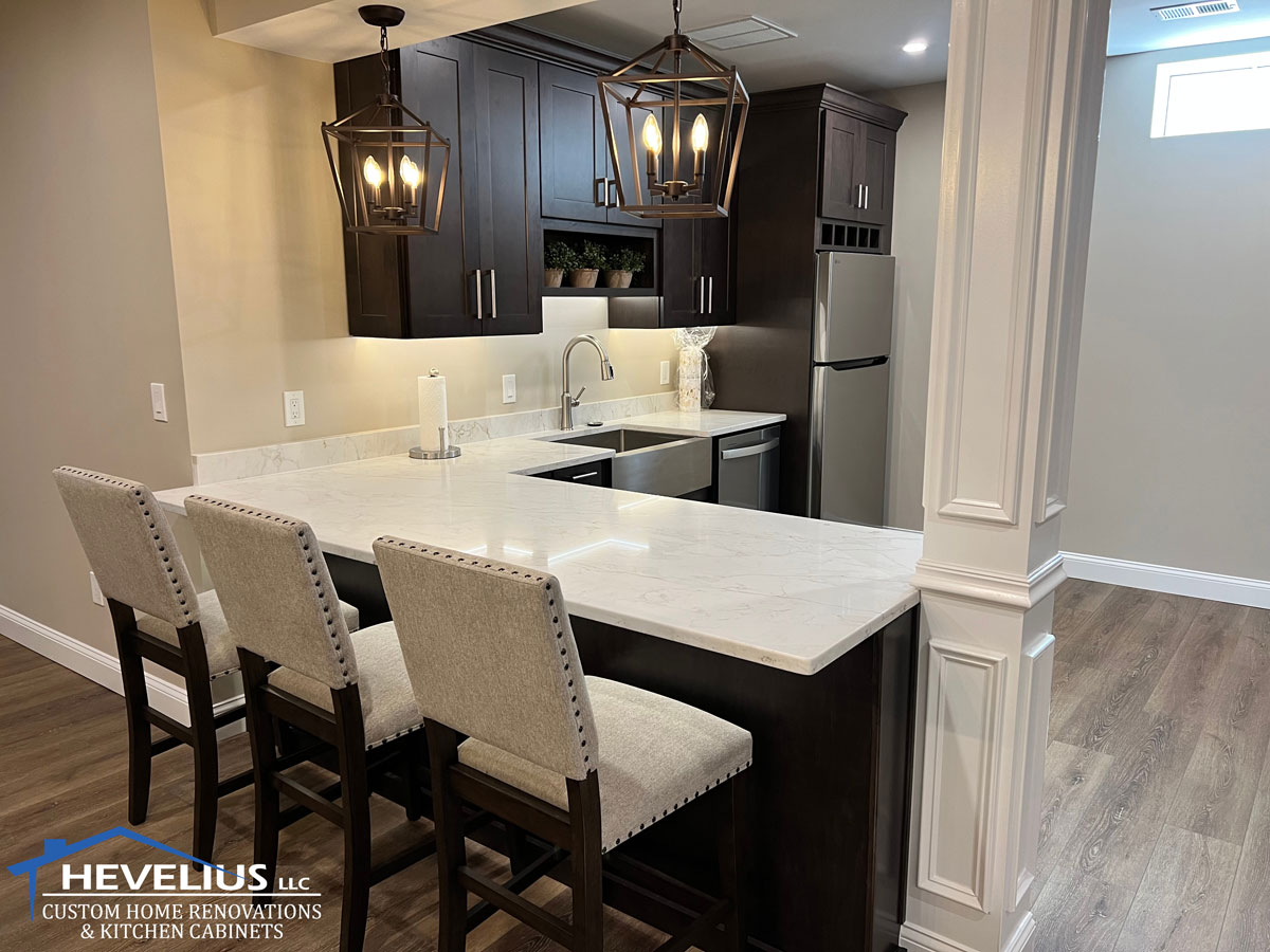 We can turn your cold, ugly, unfinished or partially finished basement into beautiful, warm and welcoming quarters. The Hevelius South Jersey Basement Remodeling Team uses the highest quality materials and craftsmanship for your basement remodeling project, with attention to every detail.