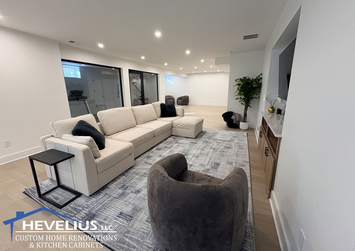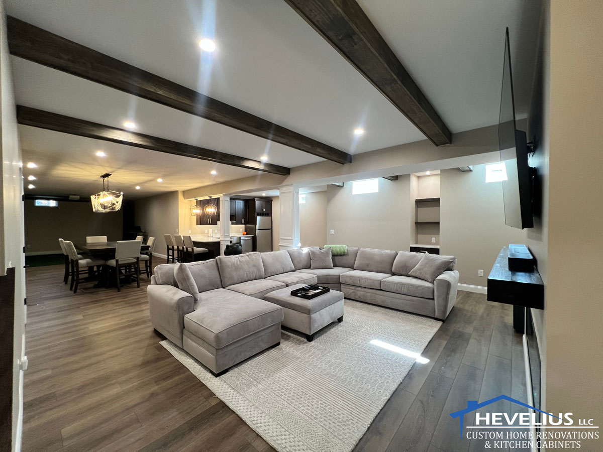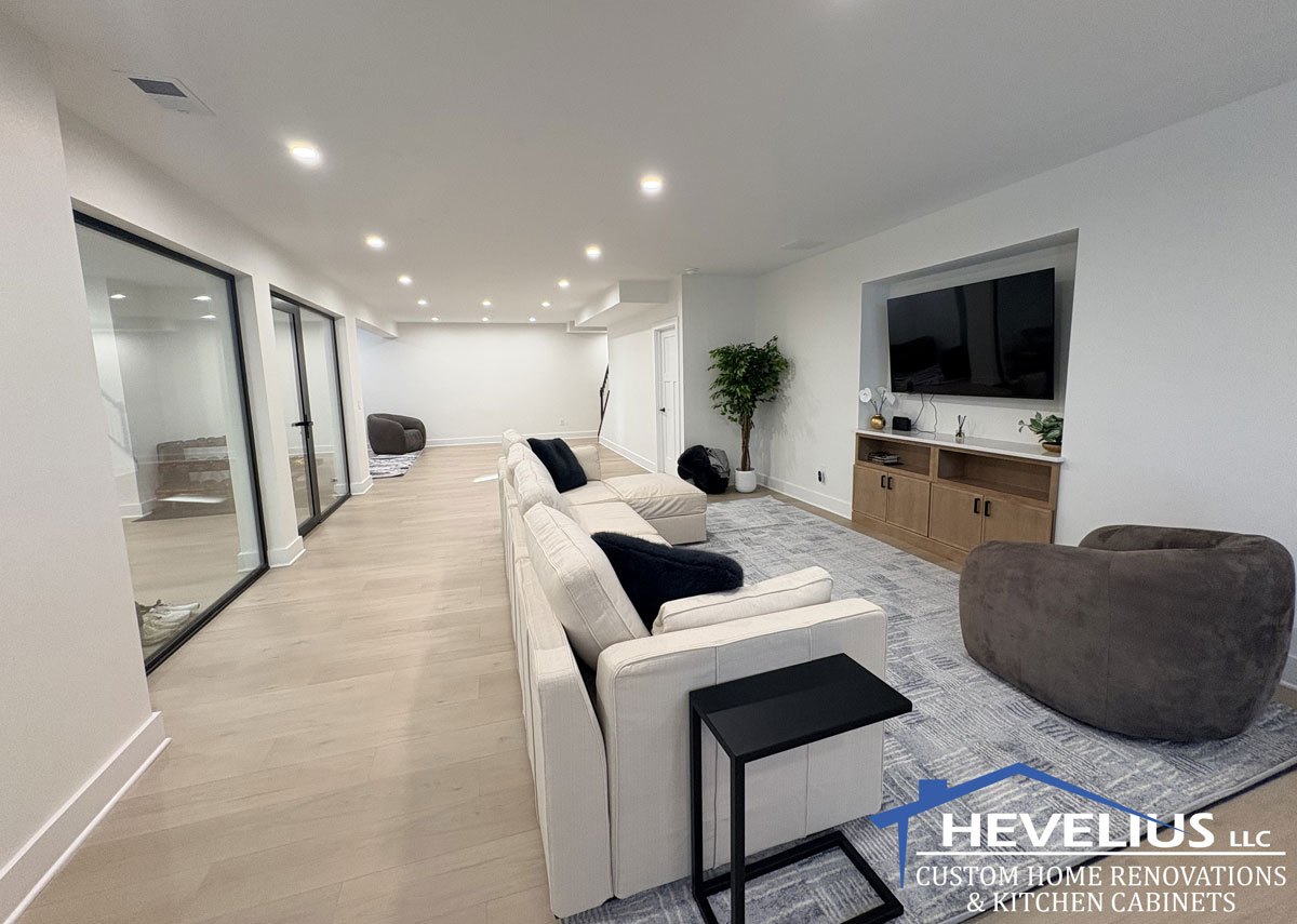 We handle all phases of your South Jersey basement finishing and remodeling project from permits to framing, electrical and plumbing, as well as HVAC solutions for newly finished spaces. With our expert advice, your basement's layout will be carefully designed by a licensed architect and optimized to best utilize every square inch of the space. We know how valuable storage areas are as well, and will incorporate those accordingly in design plans. The Hevelius team will advise on the best flooring choices and communicate with you throughout the process to ensure your complete satisfaction.